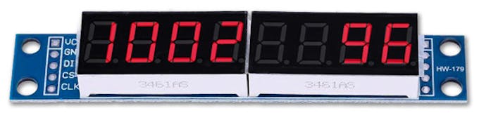 Max2719 7 Segment Display 0.56"This is the larger 0.56" version used for the the time and date display. I had a batch of these already but there are similar modules on tindie. Just make sure you are getting the larger 0.56" displays Note a small modification may be required to prevent display errors on thes modules. See the MAX2719 modification step.