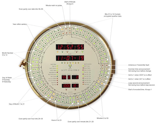 See my site for this clock Arduino DCF77 Analyzer Clock Sitehttp://www.brettoliver.org.uk/DCF77_Analyzer_Clock_Mk2/Arduino_DCF77_Analyzer_MK2.htm
