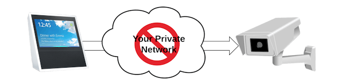 Amazon Alexa® (at least at the time of this writing) does not inherently support any direct integration with local/private network cameras running securely inside your network. Instead Alexa focuses on providing an infrastructure for third-party camera manufacturers to integrate their cameras. This is great for the few camera manufacturers that have implemented an Alexa skill; however, many camera manufacturers are not equipped to deliver such a service or its simply not a priority for them. Some manufacturers require a subscription to their own cloud products/offerings to enable this feature. To make matters worse, many users, that have multiple security cameras installed, have heterogeneous environments with a mixture of different camera models from different manufacturers.