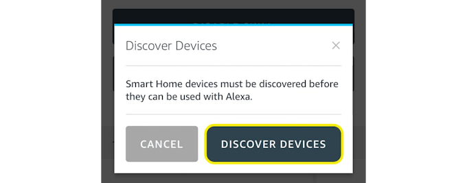 If the discovery prompt is cancelled or there is a need to re-discover a newly added camera feed, the device discovery can be launched directly from the Smart Home page of the Alexa app by pressing the "Add Device Button"