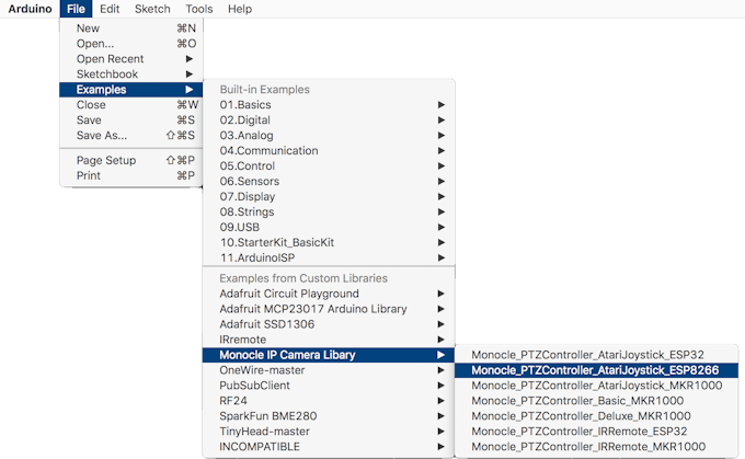 If building one of the PTZ controller projects, download and install the Monocle Arduino Library in the Arduino IDE. This library contains all the common and reusable logic blocks that are used across the various PTZ controller projects.